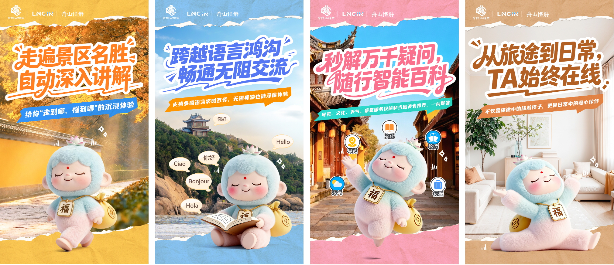 值得关注的是,AI悟静文旅智能体的成功不仅源于技术创新,更得益于其精准的市场定位。项目团队敏锐把握年轻群体的消费需求,将普陀山文化IP与时尚潮玩设计相结合,打造出全国首创的"可对话、能陪伴"的AI+IP智能体潮玩。在普陀山景区的提福咖啡各门店、禅意小镇会客厅等重点区域,AI悟静的主题装置成为年轻游客的打卡热点。可爱的外观设计、生动的语音交互和丰富的情感表达,成功打破了传统文化产品与年轻消费者之间的隔阂,让古老的文化以更时尚、更亲切的方式触达新生代。